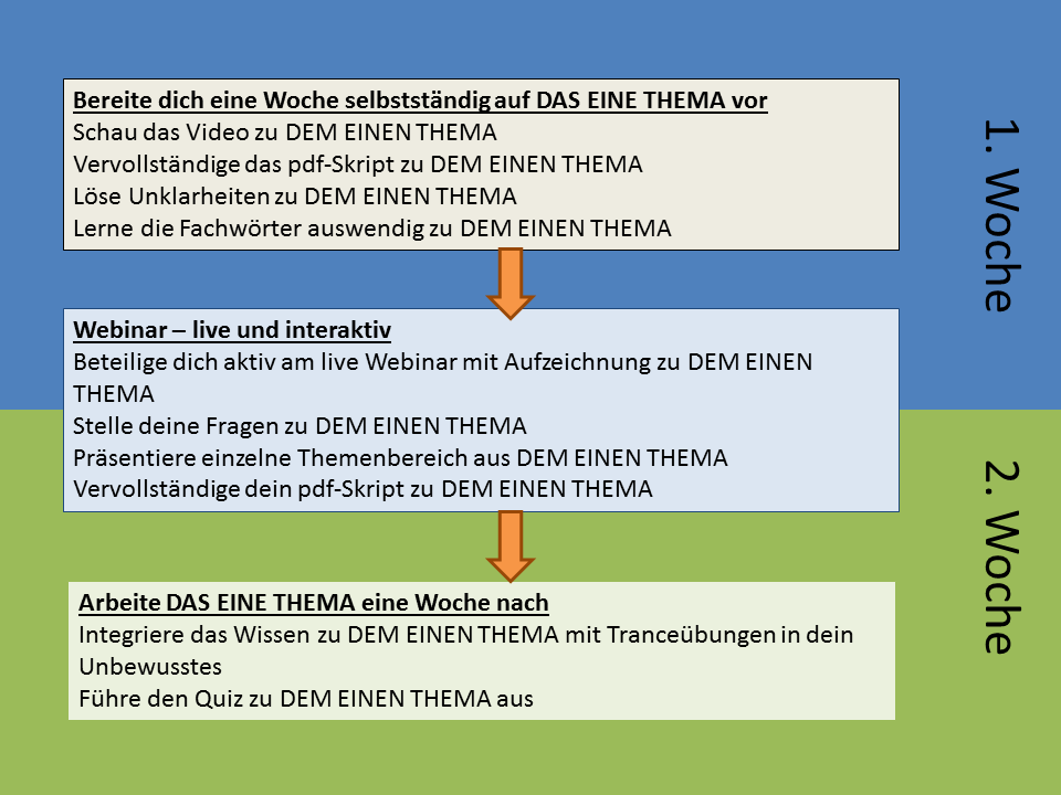 ✓ 14 Tage ein Thema nach einem ganz strukturiertem System … kein Verzetteln mehr, keine Umwege
